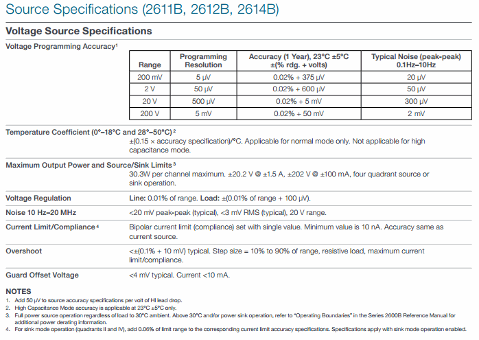 100 mV, 1 V Ranges <50 s="" typical="" br=""> 6 V Range <100 s="" typical="" br=""> 40 V Range 1 <150 s="" typical="" br=""> Current Source Output Settling Time