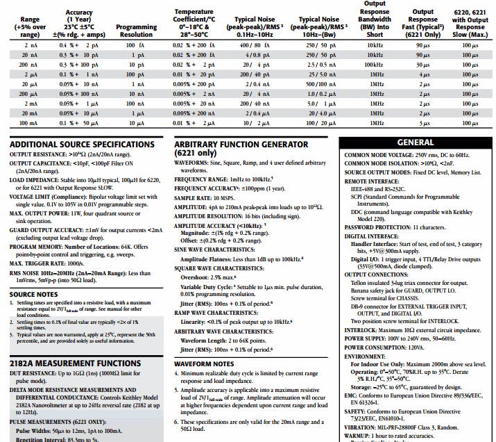 Độ phân giải: 100fA, 1pA, 10pA, 100pA, 1nA, 10nA, 100nA, 1µA, 10µA