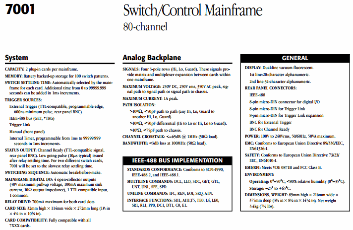 KEITHLEY 7001 Switch/Control Mainframe