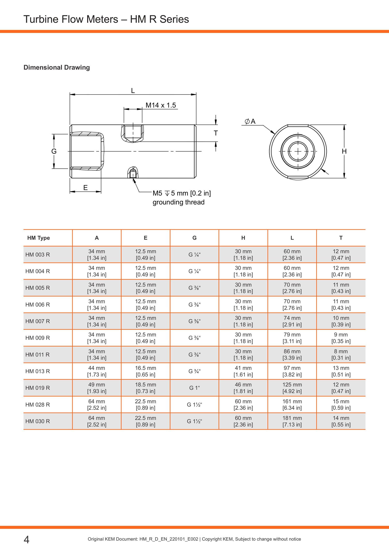 KEM HM 005 R Turbine Flow Meters with BSPP Threads (0.8 - 6 L/min)