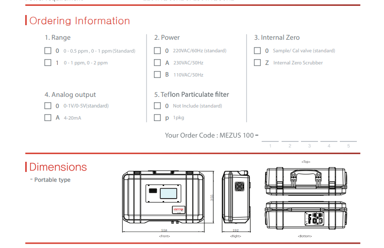 Ranges: 0 - 0.1 / 0 - 0.5 / 0 - 1ppm (selectable)