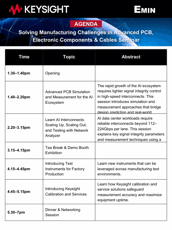 Keysight Technical Seminar: Enhancing Manufacturing Efficiency for Next-Generation PCBs and Electronic Components | EMIN.COM.MM