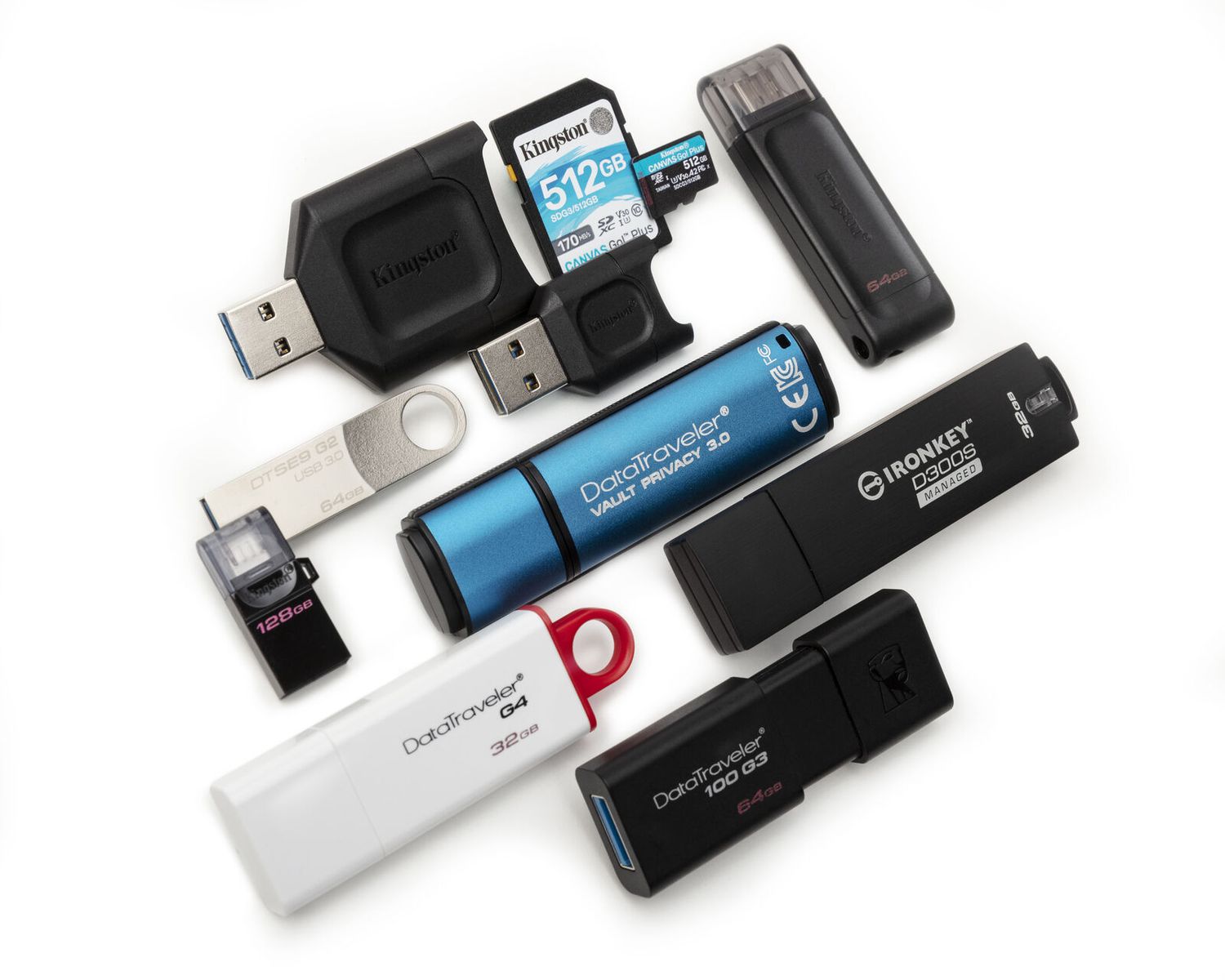 Kingston provides USB flash drives and portable memory devices designed for fast, reliable file transfers. Security-focused models are also available, offering safe storage on the go for both individuals and organizations.