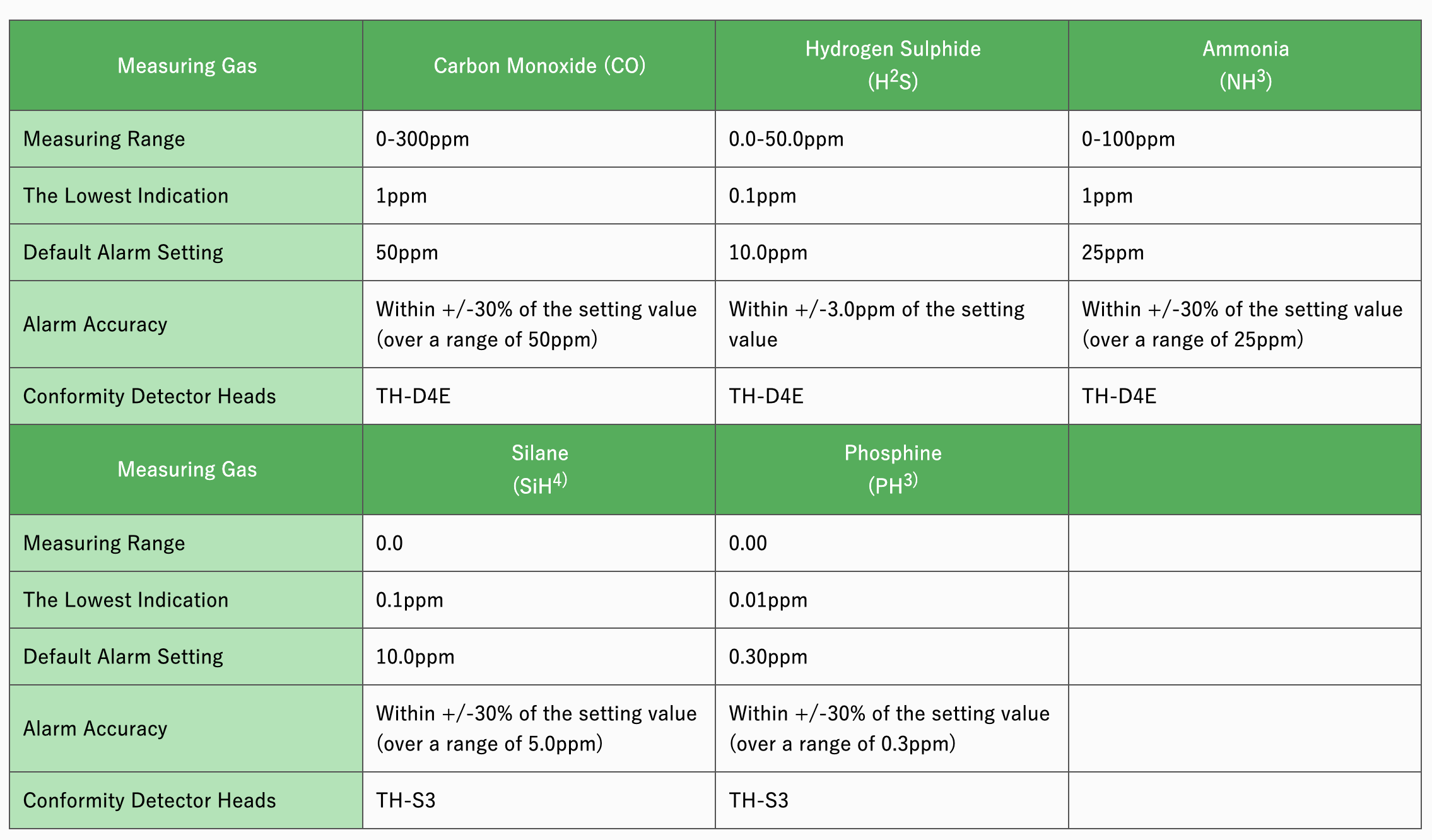 Alarm Setting: See below "Measuring Gas & Range" (Adjustable)