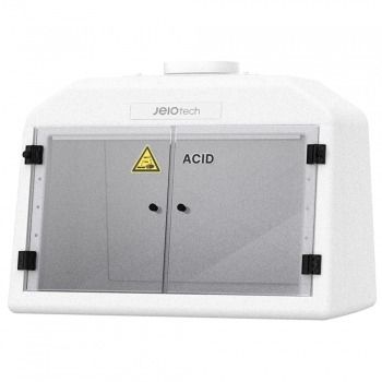 Solvent Cabinets: Equipped with dual vents to prevent vapor buildup, ensuring safety for R&D rooms. The JEIOTECH PCC-720 corrosive storage cabinet (720x472x535mm) is made of monolithic polyethylene and can withstand strong acids. In biology labs, it stores HCl without leakage concerns.