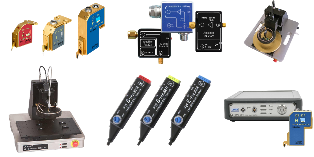 • Electromagnetic interference generation and analysis tools: A range of controlled-interference generators, electric-field and magnetic-field probes, and signal acquisition devices used to recreate, observe, and analyze EMI in detail — applicable to PCBs, modules and semiconductor components.
