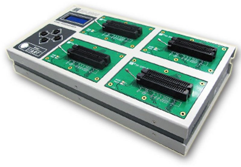 - Provides asynchronous and concurrent operation for the 4 modules which allows chips to begin programming immediately upon insertion the chip fully on the same module. There is a message show on the LCD to inform operator to take off the finished device and inserts a new device.