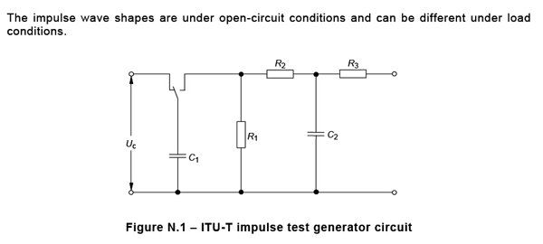 Circuit reference 1 of Table N.1 generates 10/700 μs impulses (10 μs virtual front time, 700 μs virtual time to half value) as specified in ITU-T Recommendation K.44 to simulate lightning interference in the TELECOMMUNICATION NETWORK.