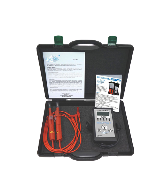 MULTI-Flex+, is provided in a carryind case, including two voltage cables, equiped with IP2X insulated plugs.