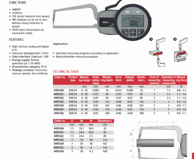 Mahr Electronic Gage for External Measurement (838 EA, 0 – 30mm, 0.02mm)