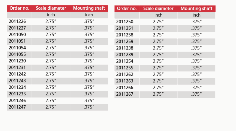 • Optional dials: balanced dial with + on left; continuous clockwise; continuous counterclockwise. (Order by part number and specify dial style desired)