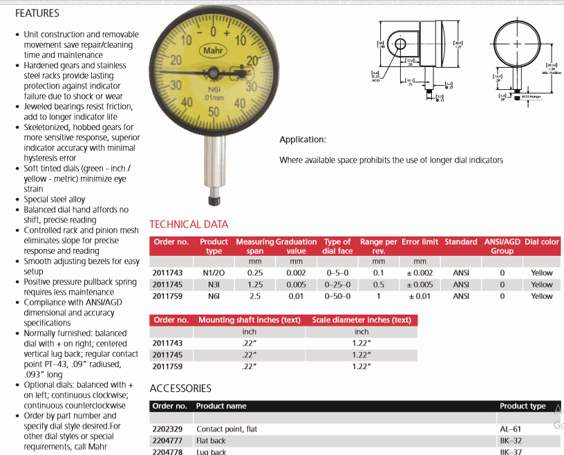 Mahr 2011759 Dial Indicator (N6I, 2.5mm)