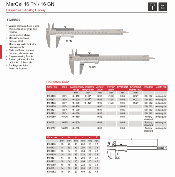 Mahr 4100650 Caliper With Analog Display (16GN, 0-150mm)