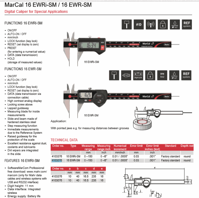 Mahr 4103076 Digital Caliper for Special Applications (16 EWR-SM, 0-150mm) | EMIN.COM.MM