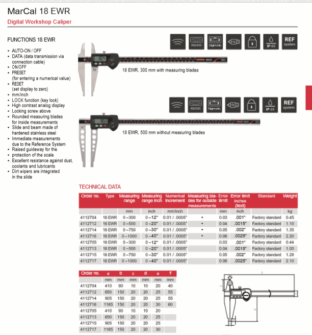 Mahr 4112712 Digital Workshop Caliper (18 EWR, 0-500mm) | EMIN.COM.MM