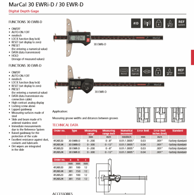 Mahr 4126533 Digital Depth Gage (30 EWRi-D, 0-200mm/0-8") | EMIN.COM.MM