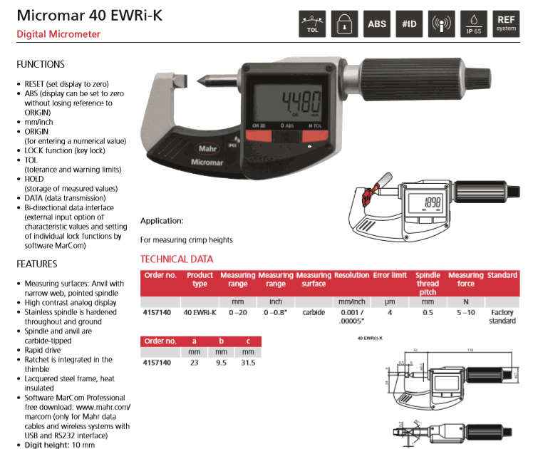 Mahr 4157140 Digital Micrometer (40 EWRi-K, 0-20mm/0-0.8") | EMIN.COM.MM