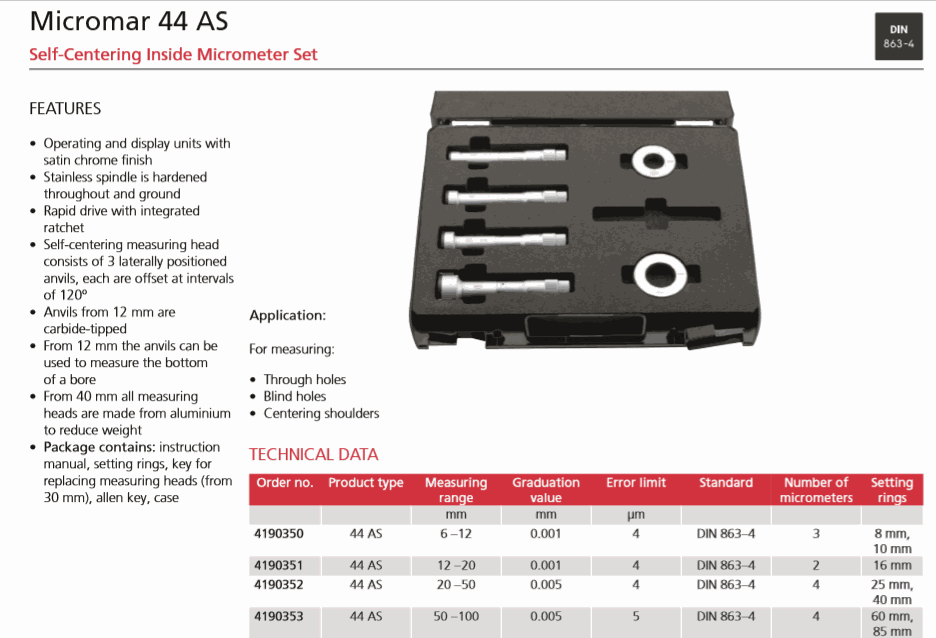 Mahr 4190352 Self-Centering Inside Micrometer Set (44AS, 20-50mm) | EMIN.COM.MM