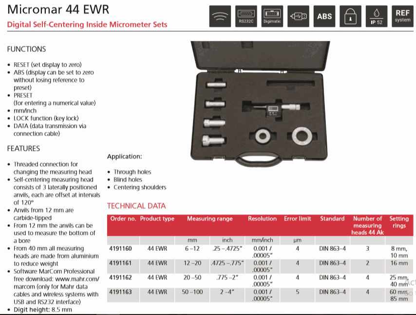 Measuring range: 6-12mm/.25 – .4725”