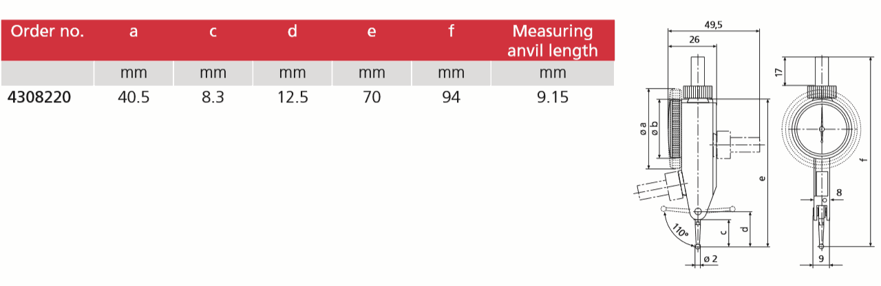 Package contains: case, instruction manual, spanner for changing the styli, stylus dia. ø 2 mm, mounting shaft 800a8