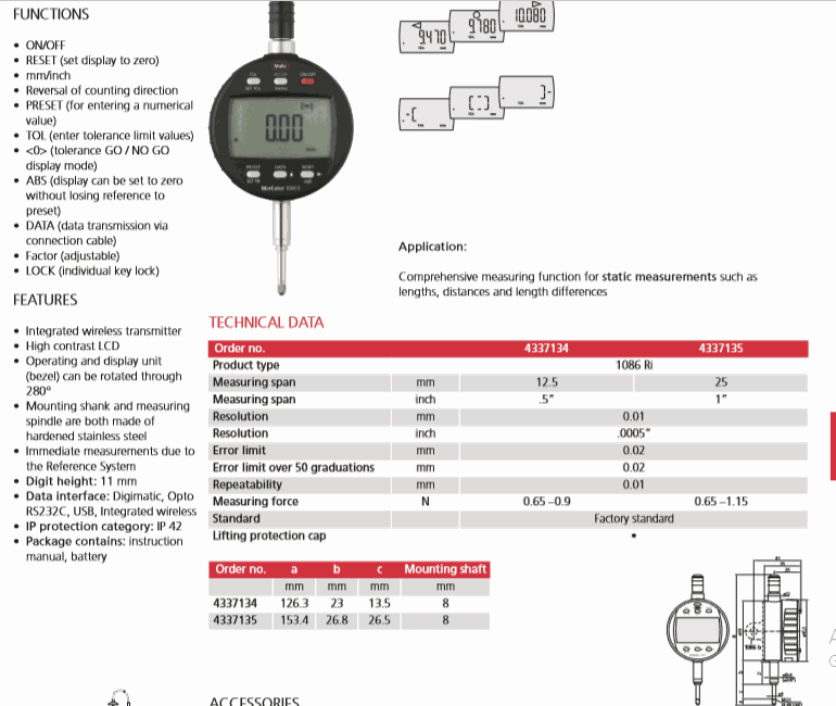 Resolution: 0.01mm/.0005”