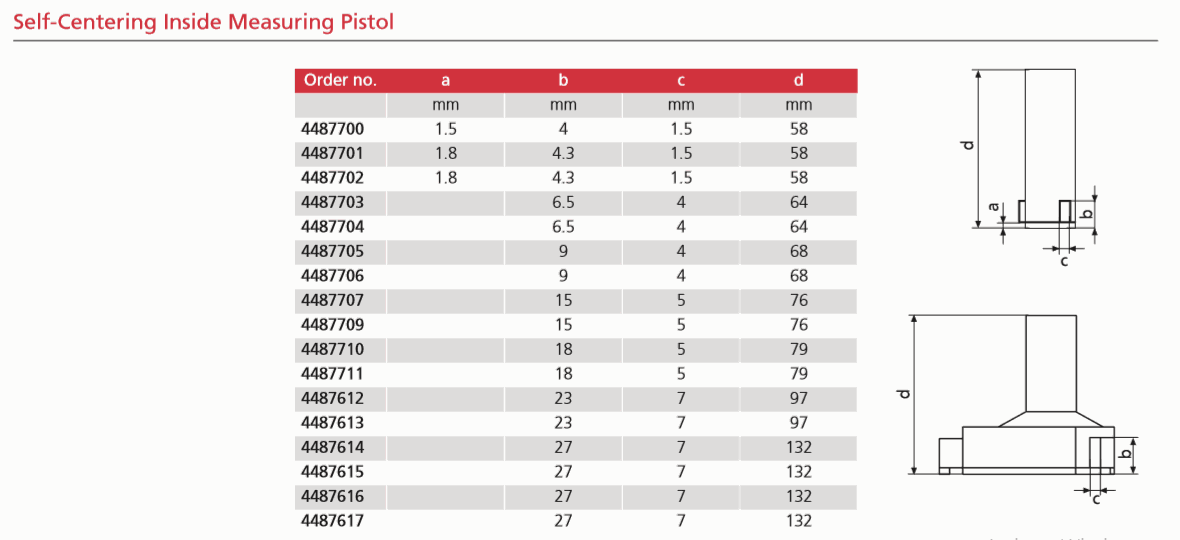 • From 40 mm all measuring heads are made from aluminium to reduce weight