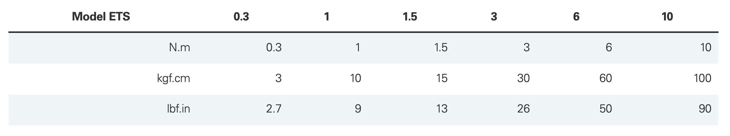 Units of measurement: mN.m, N.cm, N.m, kgf.cm, gf.cm, ozf.in, lbf.in, lbf.ft