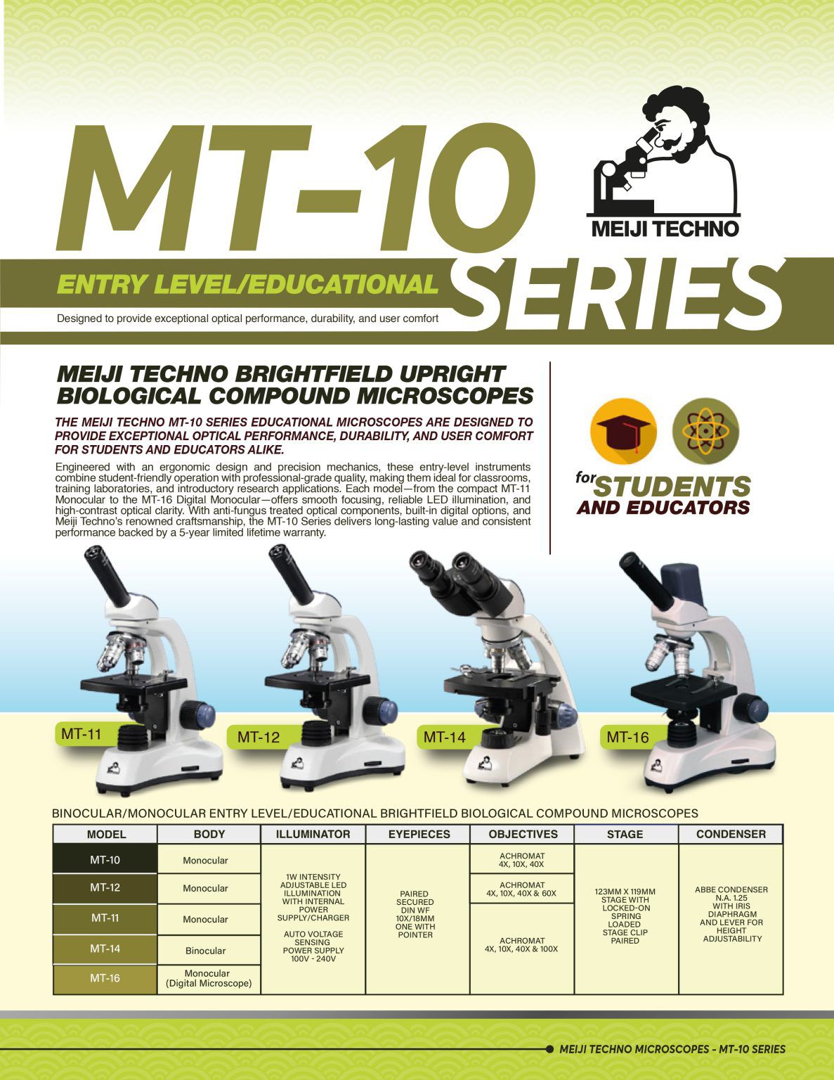 Meiji Techno MT-14 Binocular Brightfield Compound Microscopes (4X, 10X, 40X, 100X) | EMIN.COM.MM