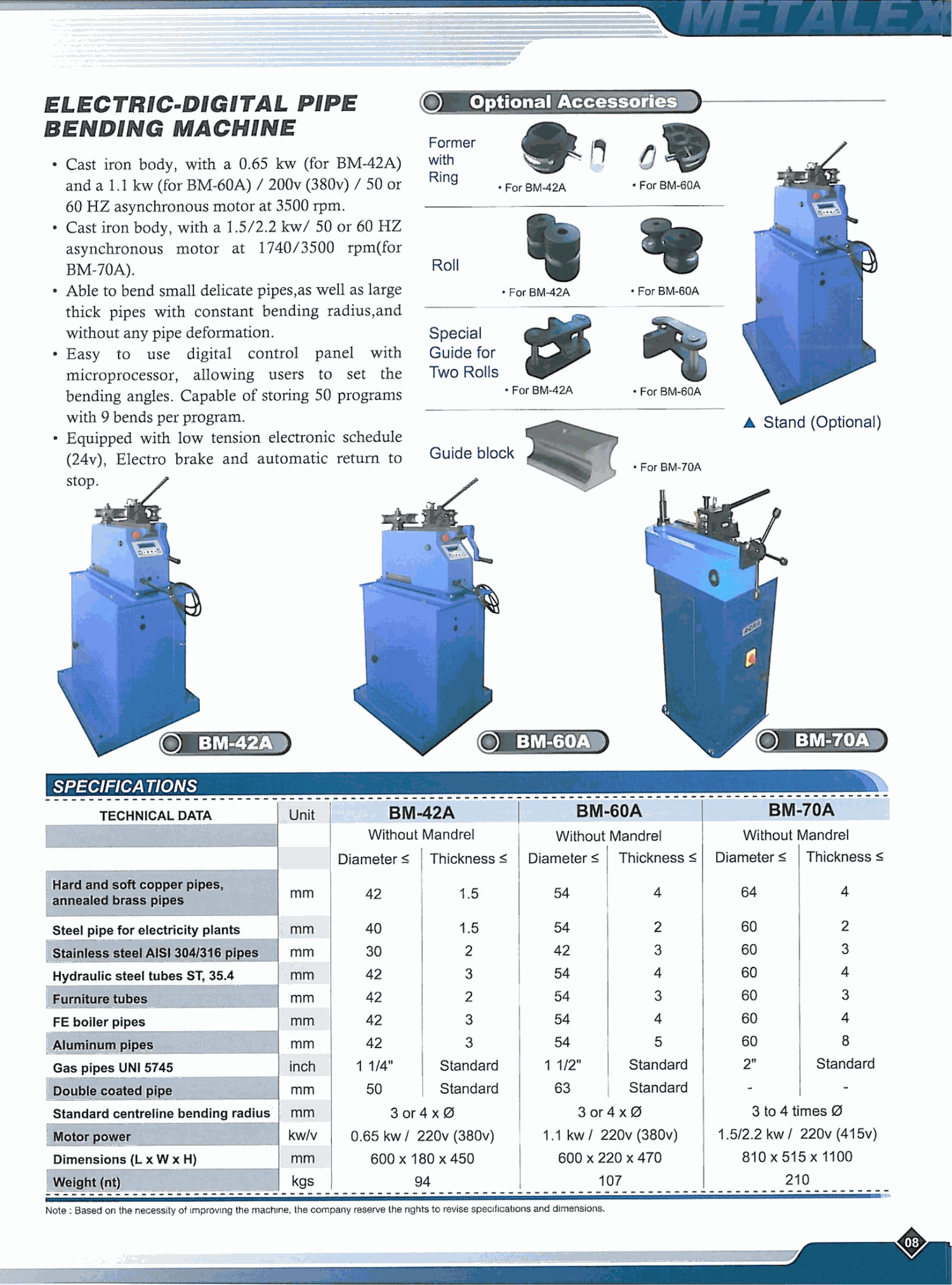 METALEX BM-60A Electric-Digital Pipe Bending Machine (3(4) x Ø)
