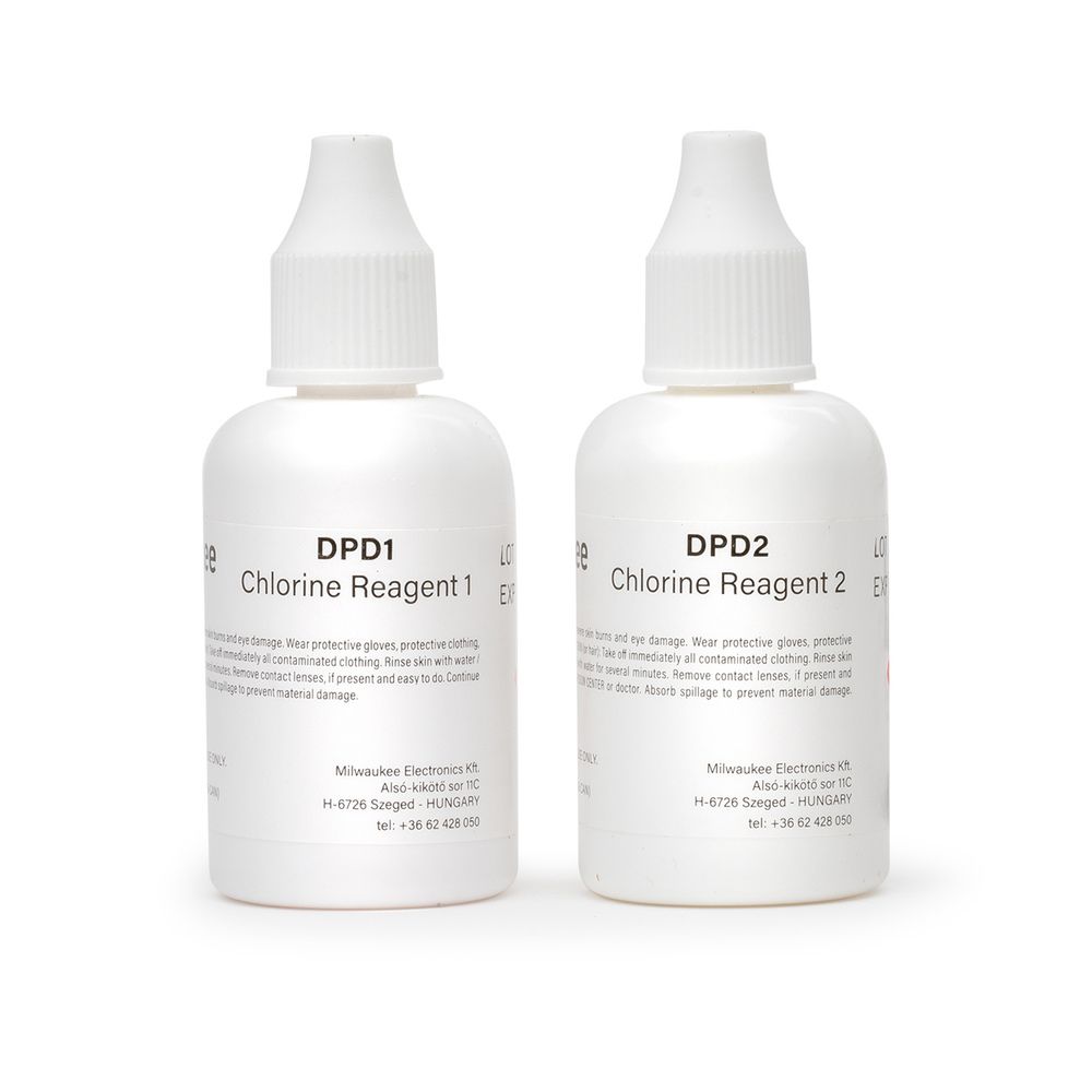 The MI506-100 Free Chlorine liquid reagent kit includes high-quality reagents that are ready-to-use with Milwaukee's Free Chlorine Meter MI406. The reagents use the DPD Method with a reaction between chlorine and reagent causing a pink tint in the sample. Simply add the reagent to the sample, wait for the reaction to take place and the photometer determines the concentration based on the color. The reagents are designed for use with samples that have an expected maximum range of 0.00 to 5.00 ppm (mg/L) Free Chlorine.