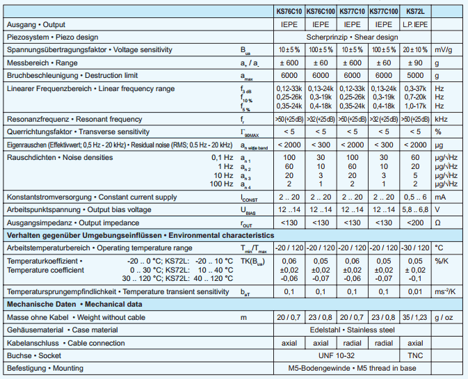 MMF KS72L High Sensitivity Accelerometer (20mV/g, ±90 g, 37000 Hz)