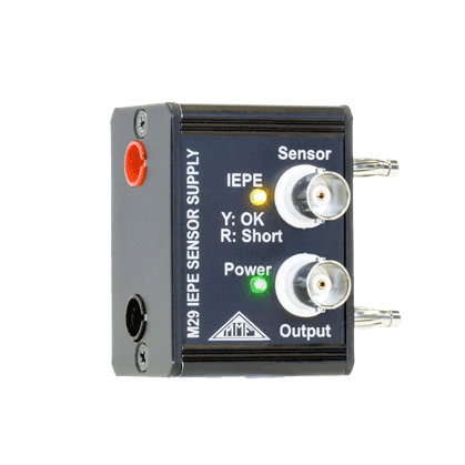 IEPE sensor status indicator: bi-color LED; off = input open; yellow = 1 .. 24 V = OK; red = shorted