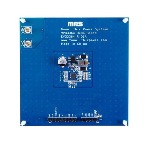 Monolithic Power Systems (MPS) EVQ3364-R-01A Evaluation Boards 150mA, 4-Channel, Boost WLED Driver with 15000:1 Dimming Ratio and I2C Evaluation Board, AEC-Q100 Qualified