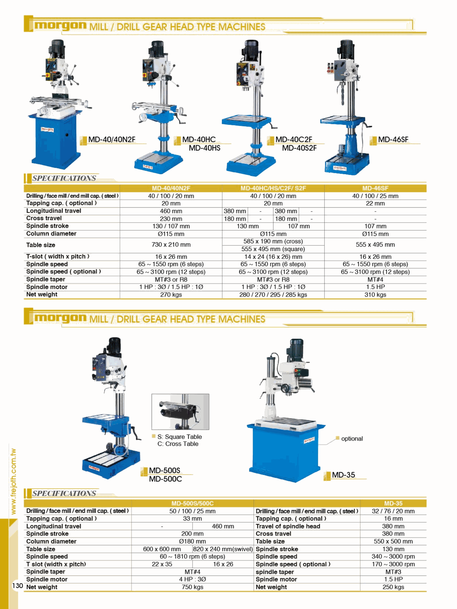 Morgon MD-40N2F Mill/ Drill Gear Head Type Machine (40/100/20 mm) | EMIN.COM.MM