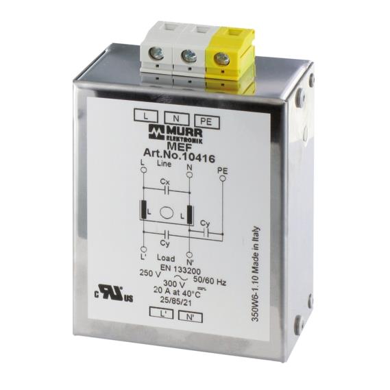 Murrelektronik 10416 Power Line Filters MEF EMC-FILTER 1-PHASE 1-STAGE, I:20A U:250 VAC/300 VDC snap on, Universal filter | EMIN.COM.MM