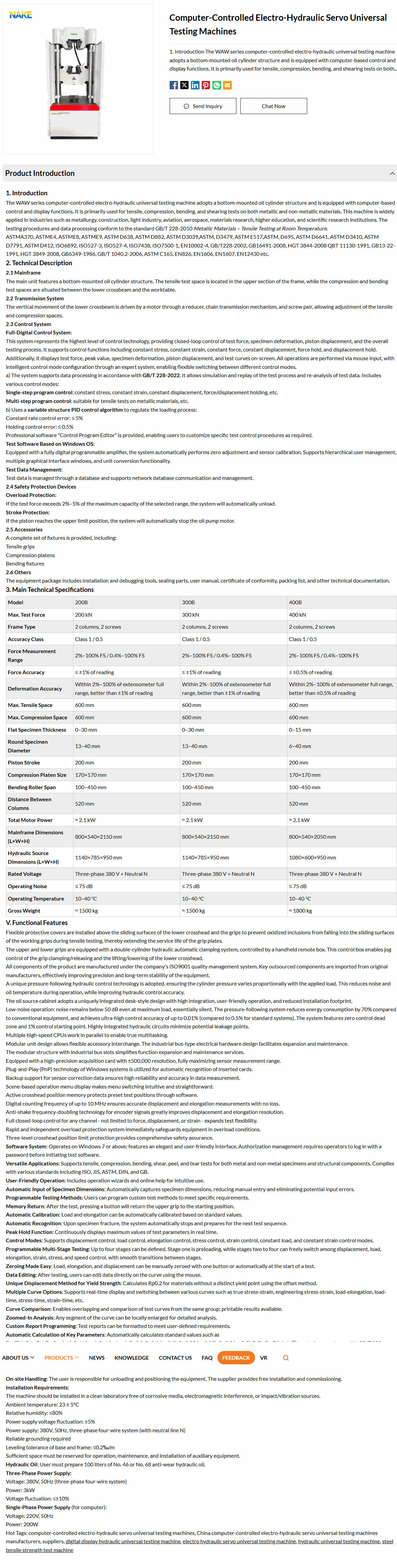 Deformation Accuracy: Within 2%–100% of extensometer full range, better than ±1% of reading