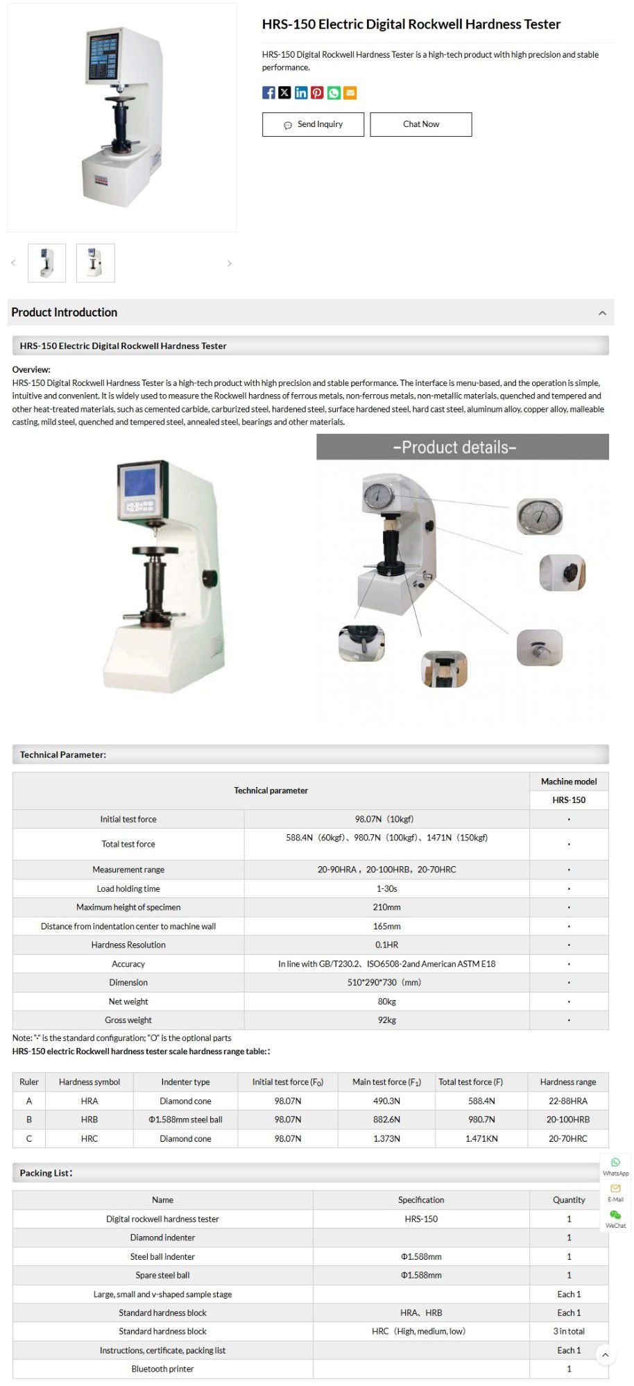 NAKE HRS-150 Electric Digital Rockwell Hardness Tester (98.07N) | EMIN.COM.MM
