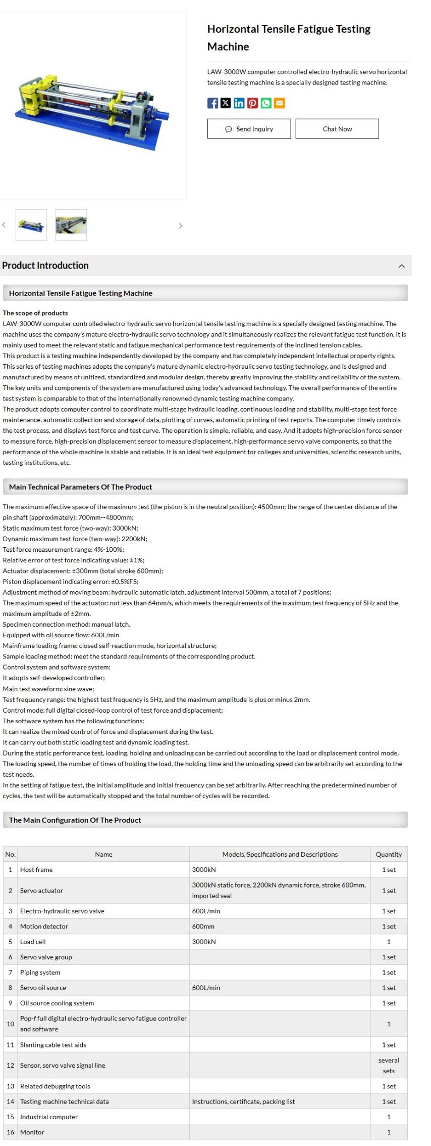 Static maximum test force (two-way): 3000kN;