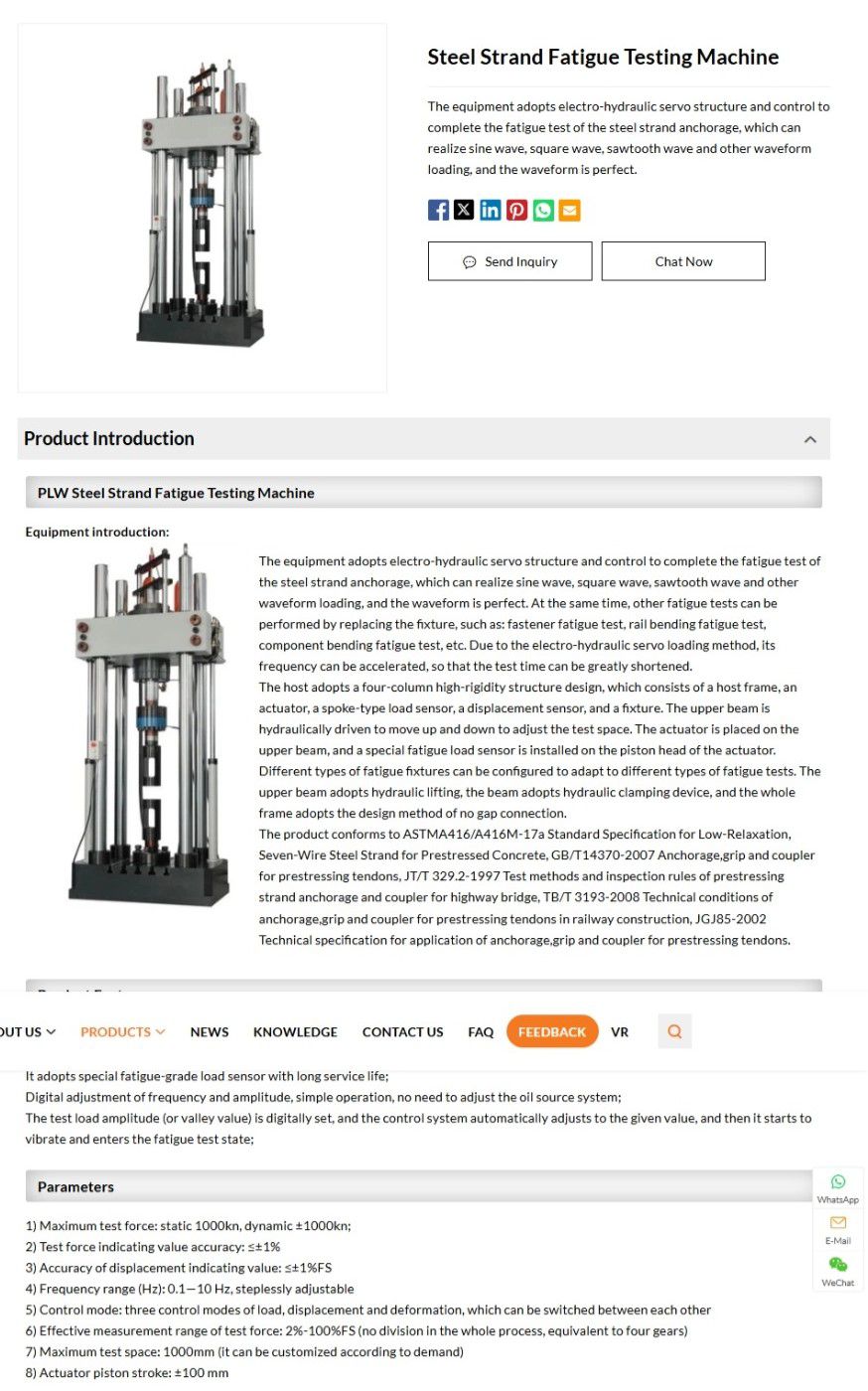 1) Maximum test force: static 1000kn, dynamic ±1000kn;