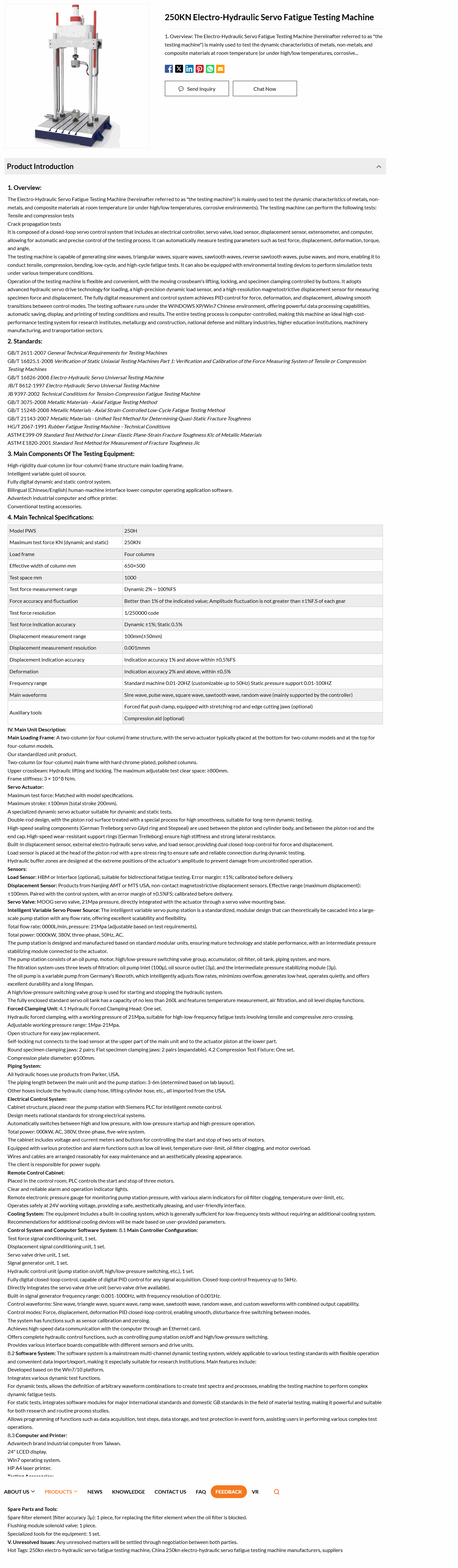 Test force indication accuracy: Dynamic ±1%; Static 0.5%