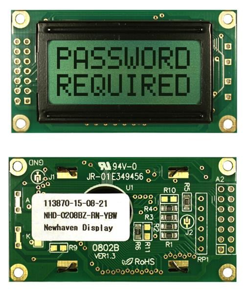 Newhaven Display NHD-0208BZ-RN-YBW LCD Character Display Modules STN - Y/G 2x8 Reflective No Bklght | EMIN.COM.MM