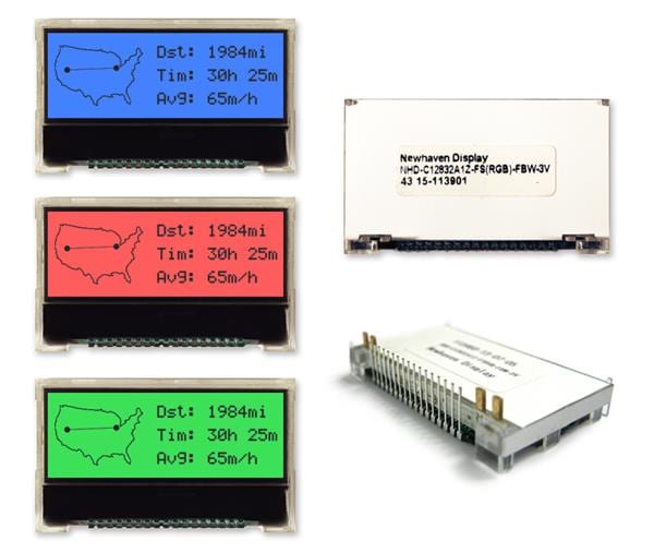 Newhaven Display NHD-C12832A1Z-FS(RGB)-FBW-3V COG LCD Graphic Display FSTN(+) RED BLU GRN 128x32 3V | EMIN.COM.MM