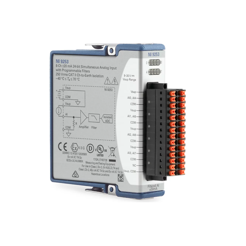 NI NI-9253 C Series Current Input Module (Conformal Coated, Ring Terminals (qty 3), 50 kS/s/ch, -20~20 mA, 24-Bit)