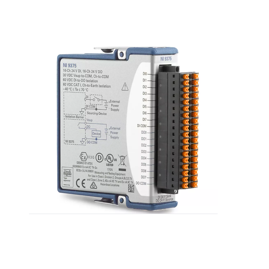 The C Series Digital Module interacts with a range of industrial switches, transducers, and devices. Some modules include an LED per channel that indicates the state of the channel. It supports input, output, or a combination of digital lines, and they can interact with a variety of voltages and logic levels, so they are well-suited for a variety of benchtop and industrial environments. Additionally, the C Series Digital Module also offers isolation options and sinking or sourcing capabilities to add further protection to your digital I/O application. When you use the C Series Digital Module with CompactRIO, you can use LabVIEW FPGA to create custom high-speed counter/timers, digital communication protocols, pulse generation, and more.The C Series Digital Module includes the NI-DAQmx driver and configuration utility that simplify configuration and measurements. NI-DAQmx supports NI programming environments as well as Python, ANSI C, C#.NET, and MathWorks MATLAB® software.