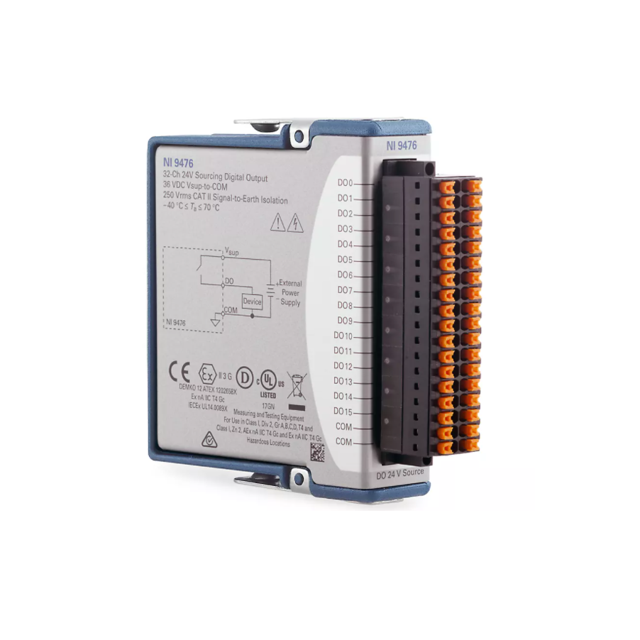 The C Series Digital Module interacts with a range of industrial switches, transducers, and devices. Some modules include an LED per channel that indicates the state of the channel. It supports input, output, or a combination of digital lines, and they can interact with a variety of voltages and logic levels, so they are well-suited for a variety of benchtop and industrial environments. Additionally, the C Series Digital Module also offers isolation options and sinking or sourcing capabilities to add further protection to your digital I/O application. When you use the C Series Digital Module with CompactRIO, you can use LabVIEW FPGA to create custom high-speed counter/timers, digital communication protocols, pulse generation, and more.The C Series Digital Module includes the NI-DAQmx driver and configuration utility that simplify configuration and measurements. NI-DAQmx supports NI programming environments as well as Python, ANSI C, C#.NET, and MathWorks MATLAB® software.