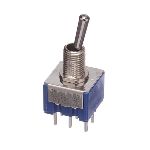 Nidec Components 8A2012-Z High-Reliability Miniature Toggle Switch DPDT, ON-ON, 10.5mm toggle, 1/4"-40 threaded bushing, straight PC terminals, 6A @ 125V AC