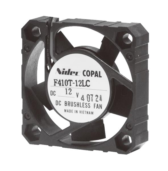 Nidec Components F410T-12LC Brushless Brushless DC Fan, 40 X 40 X 10mm, 12V DC, .11m3/min Air flow, 10 Pa Static pressure, 12db Noise, 1 sleeve bearing