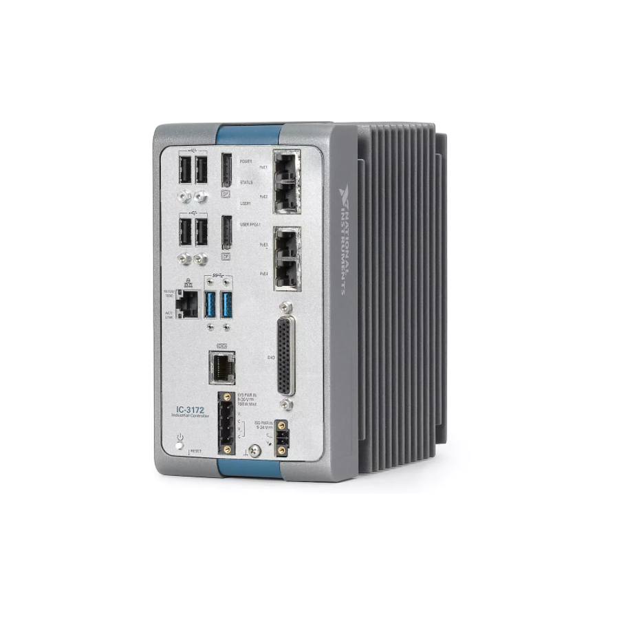 Industrial Controllers are high-performance, fanless controllers that provide connectivity for communication and synchronization to EtherCAT and Ethernet CompactRIO chassis, EtherCAT motion drives, GigE Vision and USB3 Vision cameras, and other automation equipment. Controllers also have onboard isolated, transistor‐transistor logic (TTL), and differential digital I/O. You can use LabVIEW system design software to create, debug, and deploy logic to both the onboard FPGA and the processor. LabVIEW contains over 950 signal processing, analysis, control, and mathematics functions to accelerate development.