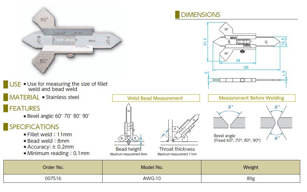 Niigata Seiki AWG-10 Welding Gauge | EMIN.COM.MM