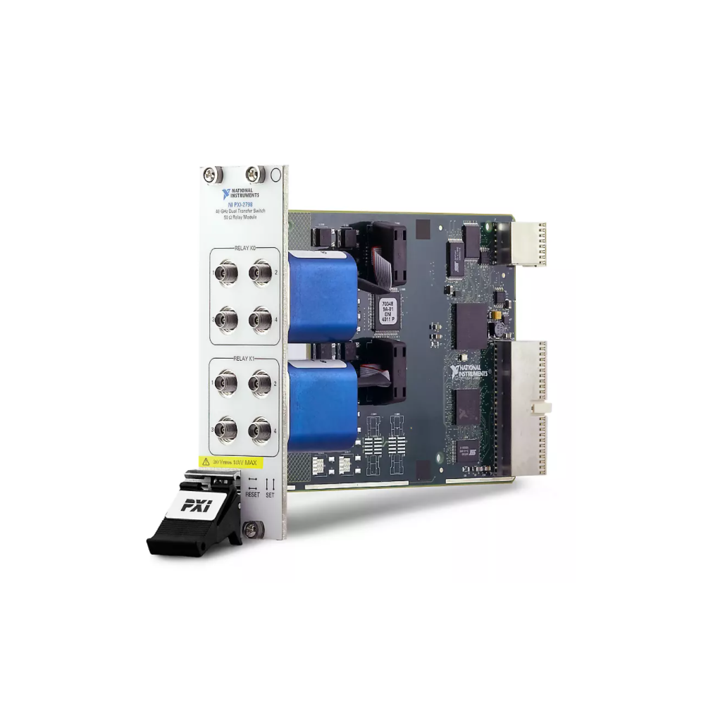 PXI Transfer Switch Modules offer fast insertion times and low insertion loss to switch loads at RF frequencies. The modules also have 50 Ω impedance that helps minimize reflections of the RF signal and protect your instruments. You can program the PXI Transfer Switch Module using the NI-SWITCH instrument driver.